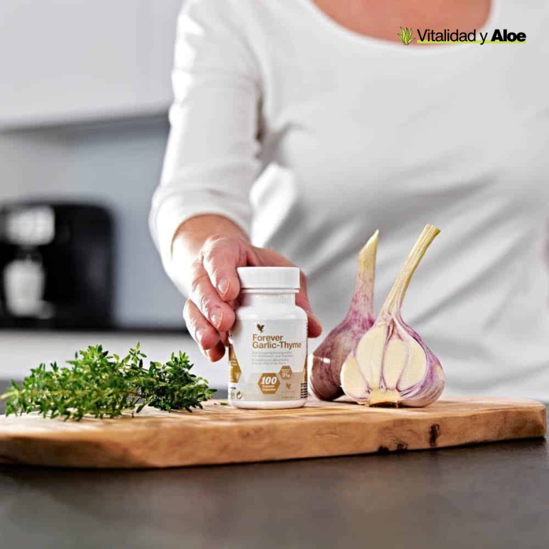 Garlic-Thyme™ es un complemento alimenticio que combina extractos naturales tradicionalmente utilizados para apoyar la salud cardiovascular, reforzar el sistema inmunológico y favorecer la digestión. Su fórmula ofrece una alternativa práctica y sin olores fuertes, ideal para quienes buscan los beneficios de ingredientes botánicos en su rutina diaria.